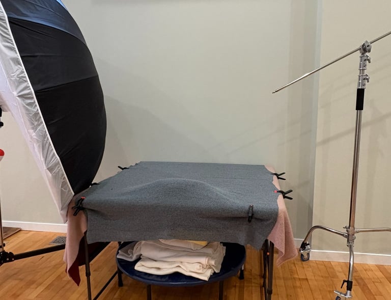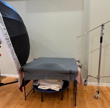 The space includes seamless backdrops, moveable furniture, a newborn setup, and a basic lighting setup (stand + PLM). But one of our favorite features?Our renter's closet, fully stocked with wardrobe pieces, curated props, and styling extras to help you elevate your sessions without the haul.