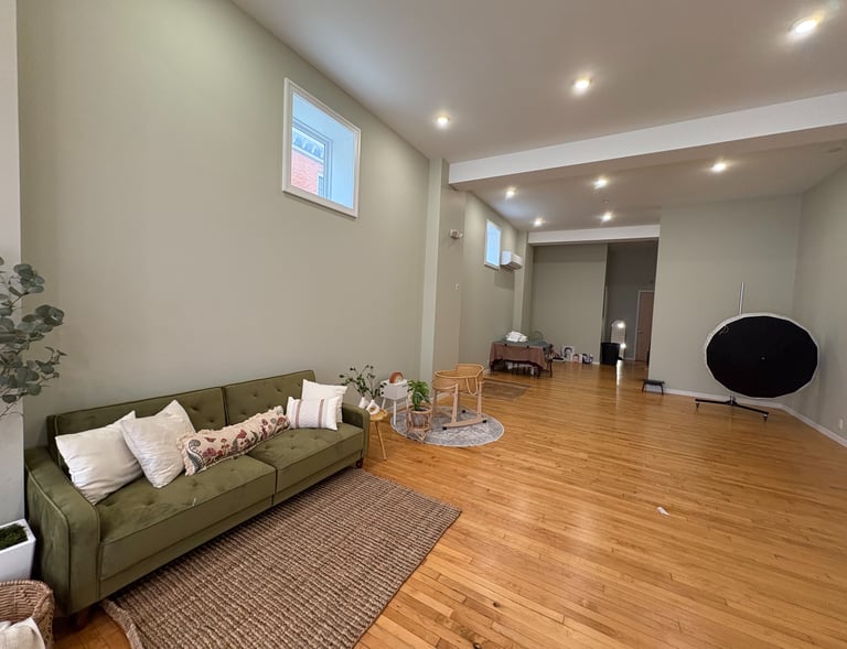 Our light-filled studio is designed with photographers in mind — a cozy, flexible space perfect for lifestyle sessions, studio portraits, branding shoots, and more.